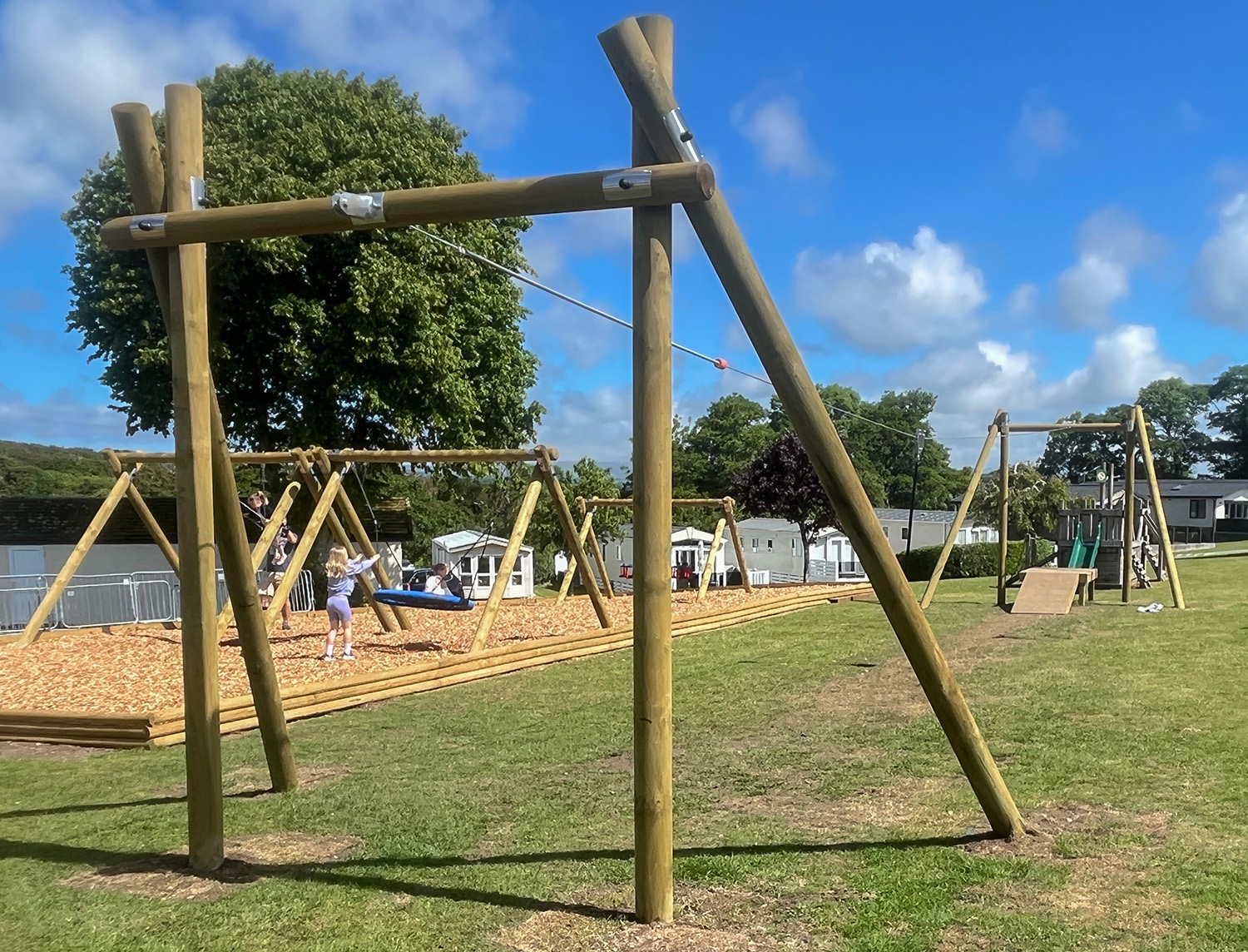 The park now features an exciting array of new play equipment, including a bespoke Connect Tower, zipline, Tree Top Tangle Trail, and a variety of swings with a basket seat, flat seat, and cradle seat, creating engaging new spaces for children and families to enjoy throughout their visit.“