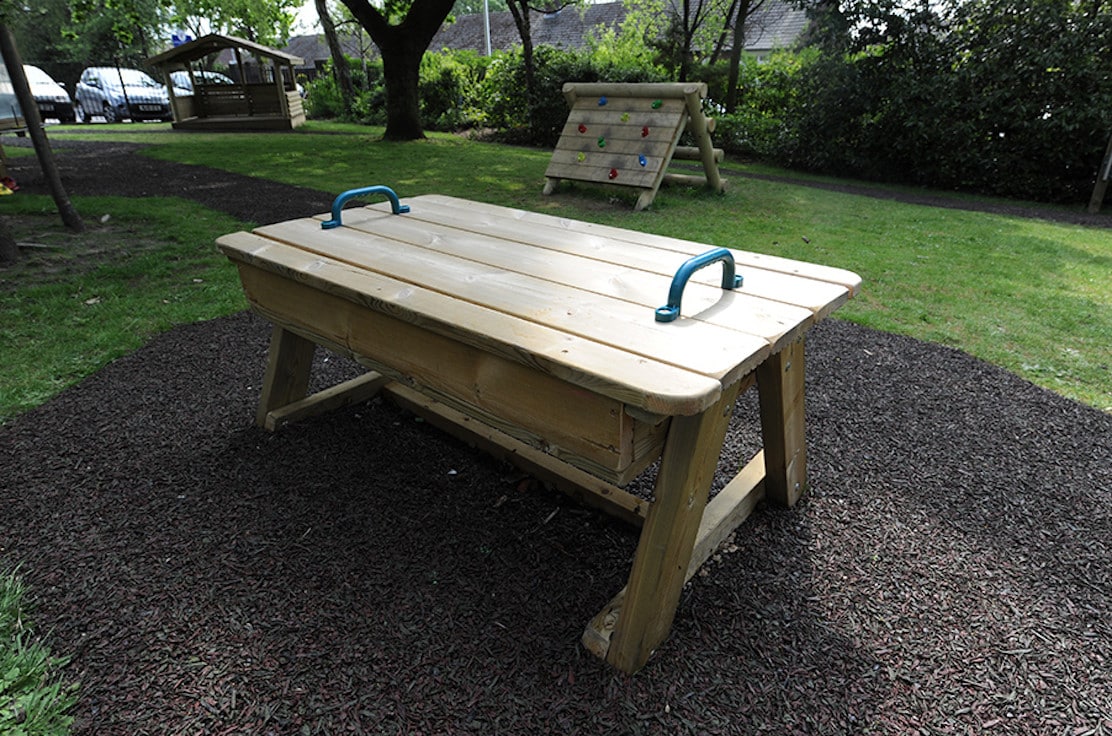 Our innovative sand table is the practical solution for areas where space is limited. Not only does it provide easy access to sand play, it doubles up as a table when not in use.