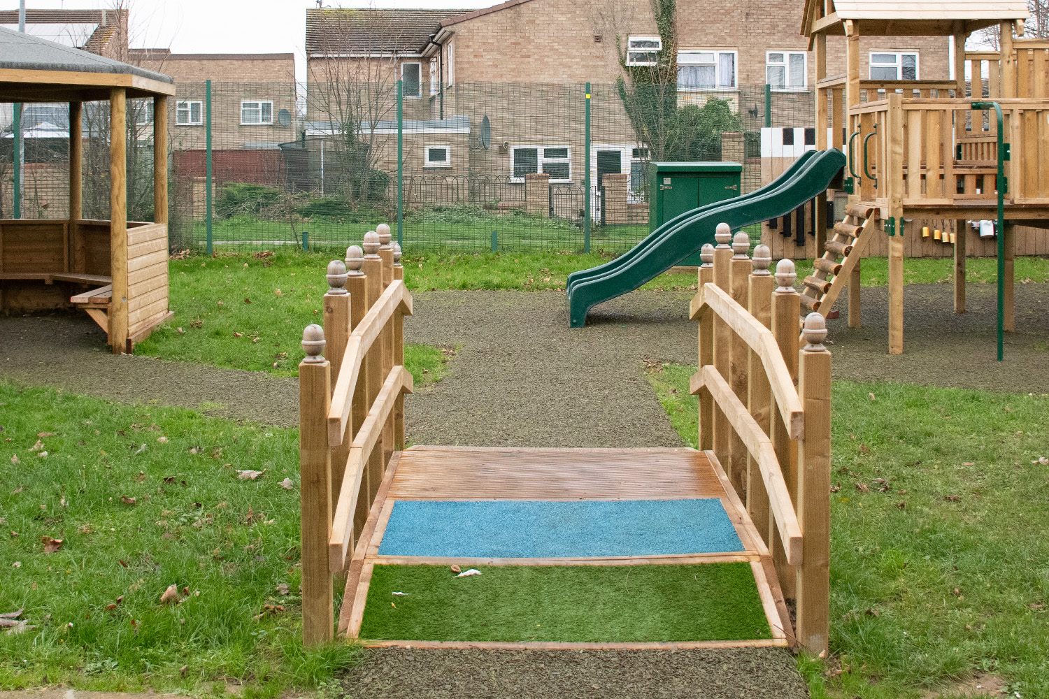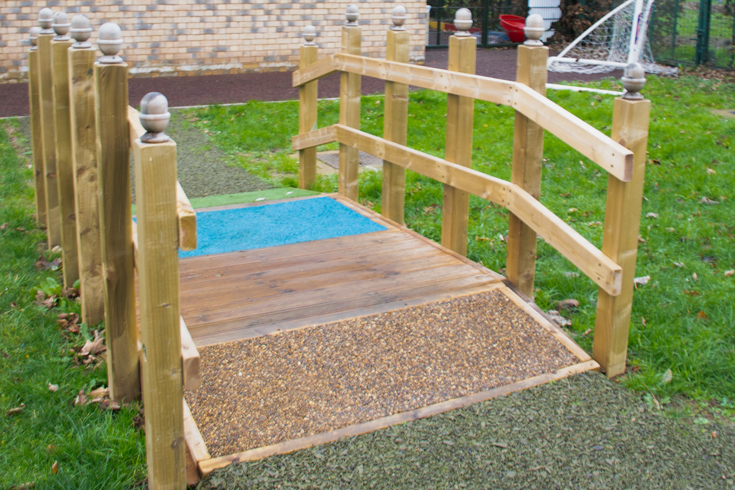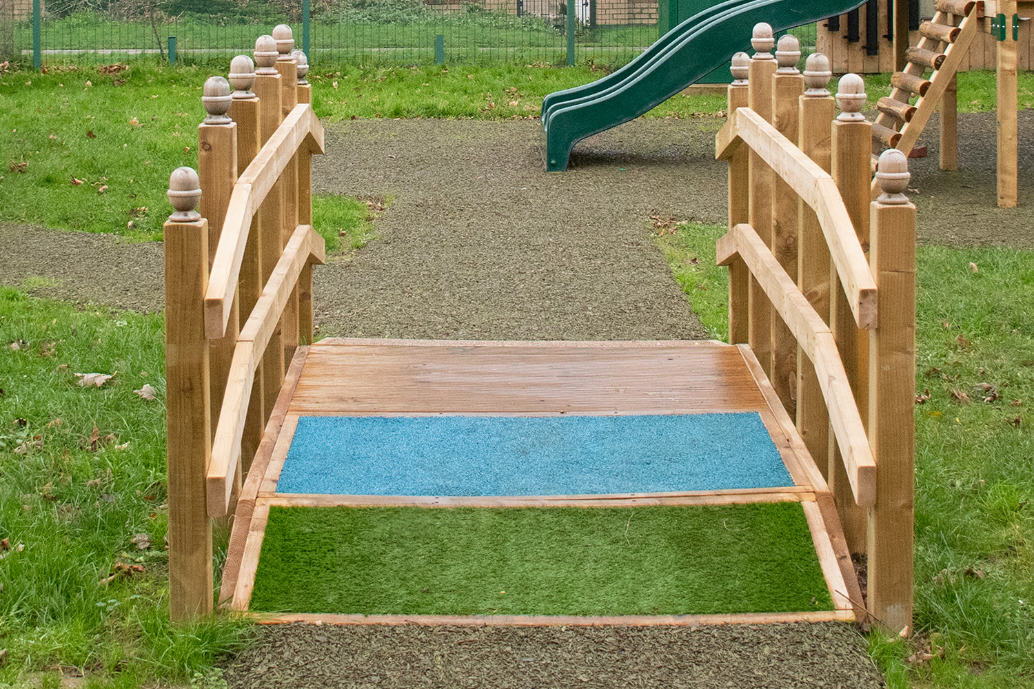 The bridge allows access for wheelchair and less abled users, and would be a great addition to any sensory background with its bright colours and different textures.