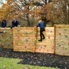 Our Everest Climbing Wall is a visually impressive climber that caters for all ages and abilities. It starts at a slightly lower height one end with smaller inclines, and as the confidence and abilities develop the children can move on to the higher end including the super tough overhangs!