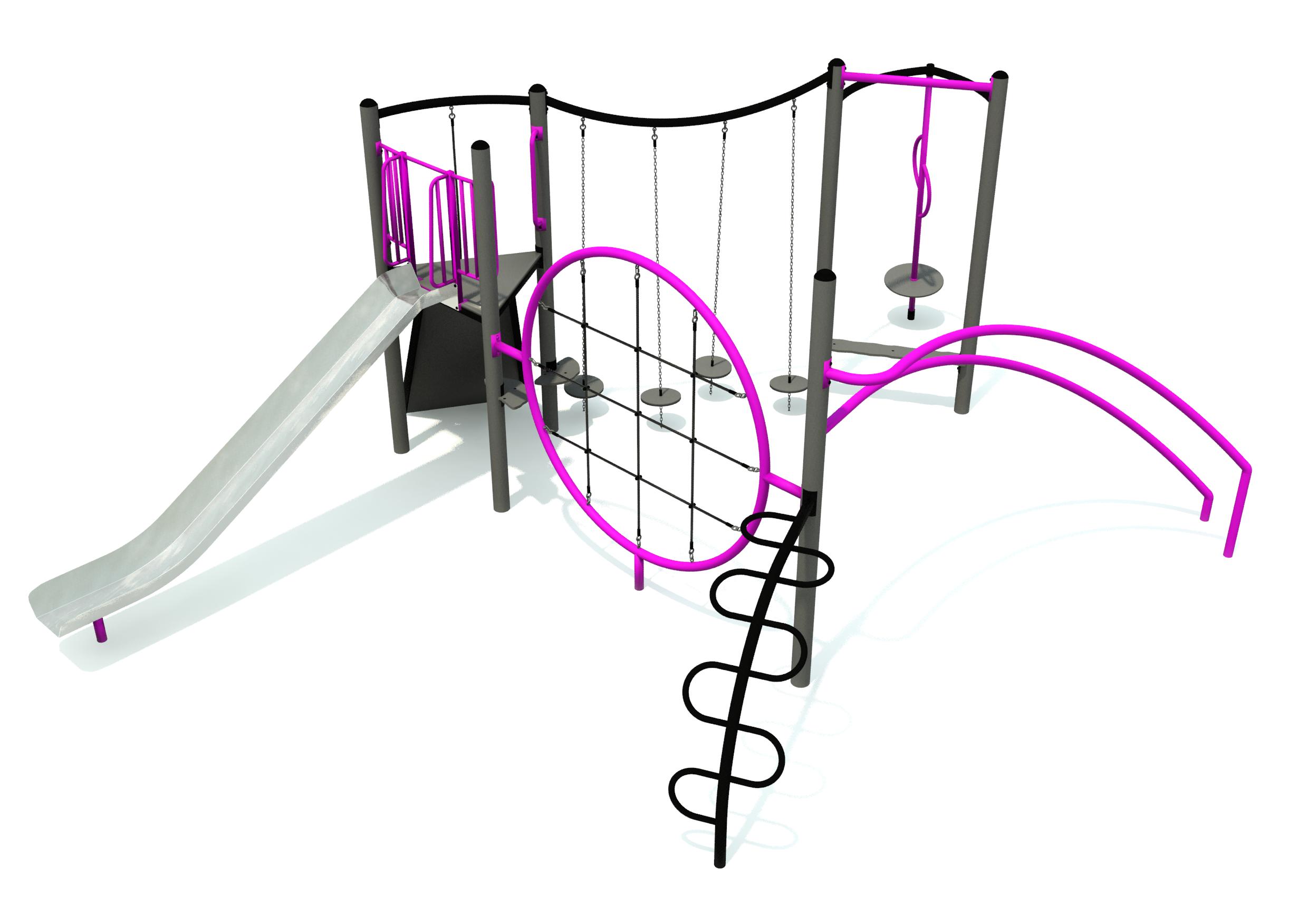 The Kingsdale Tower offers an exciting and unique variety of ways to traverse, letting you spin, slide, or climb how you desire! Paired with its robust metal construction, this makes for a great long lasting all rounder to any play space!