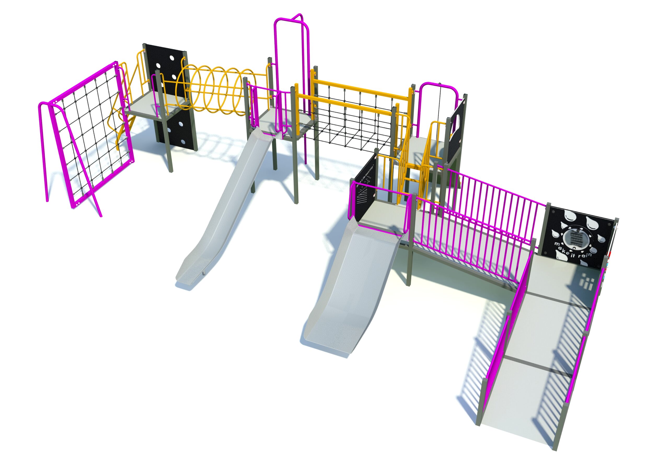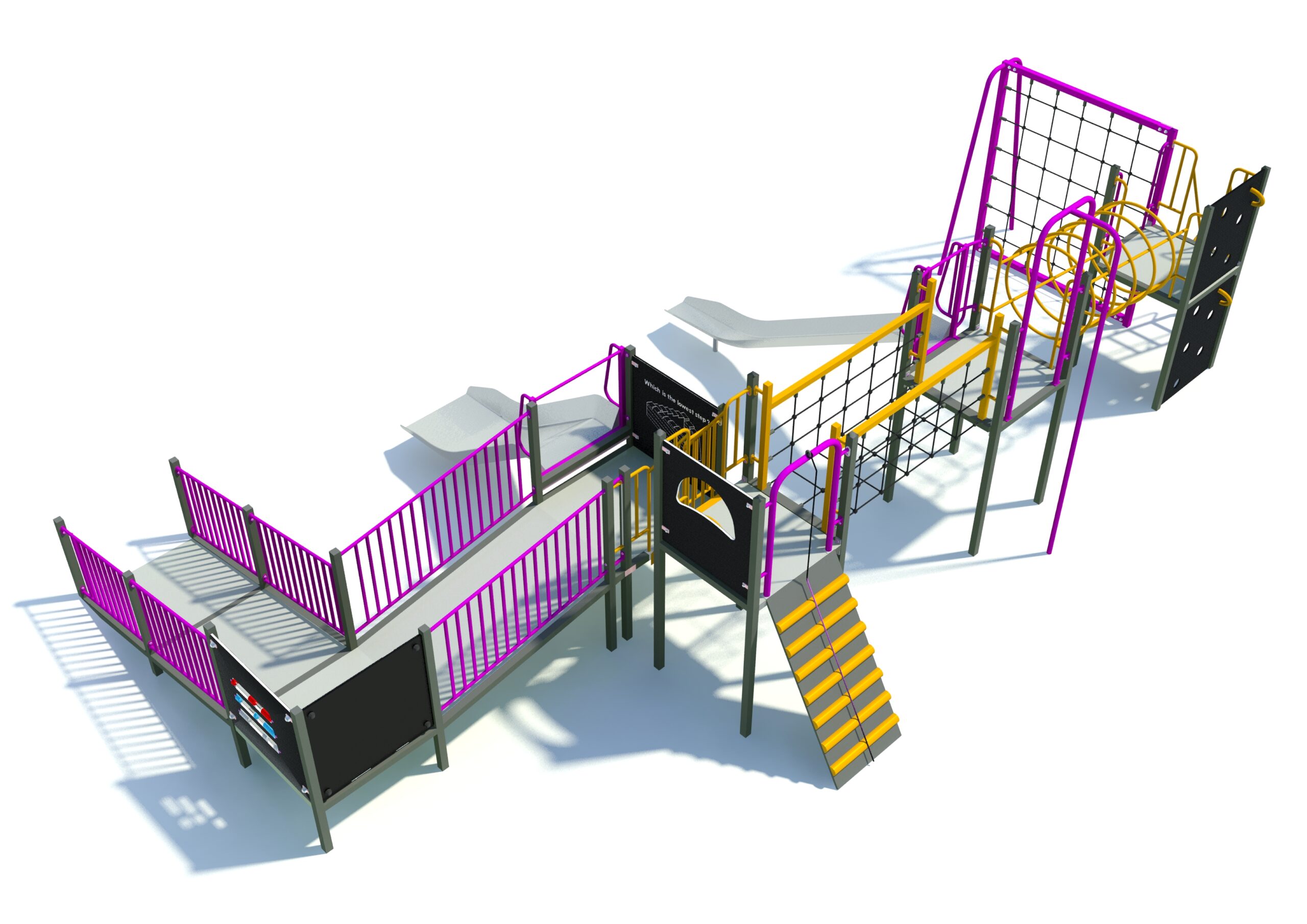 One of the newer additions to the Sovereign range, the Mossdale Tower offers a diverse range of play, ranging from interactive panels up to rope walls and fireman’s poles! The two slides as well yield different strengths, with one being more tailored to height, and the other being directed more towards racing your friends!
