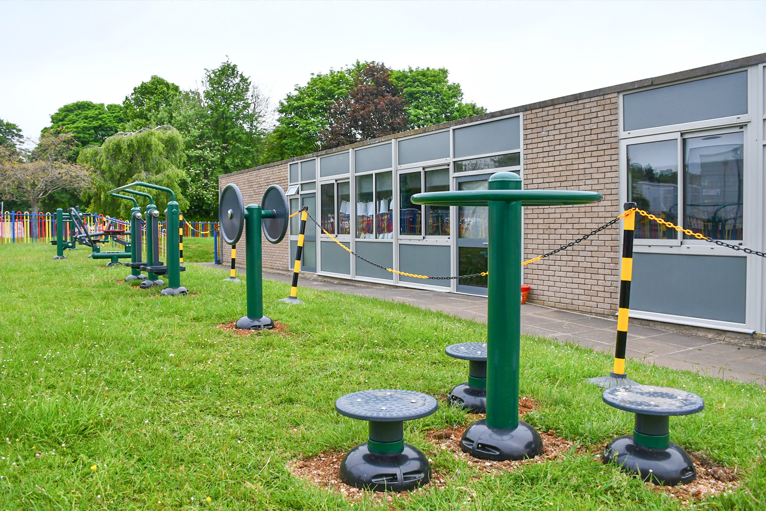 Supply and installation into a level grass or tarmac area. Includes the following products: Waist Twister, Double Health Walker, Double Strength Challenger, Arm and Pedal Bike, Double Slalom Skier, Rower.