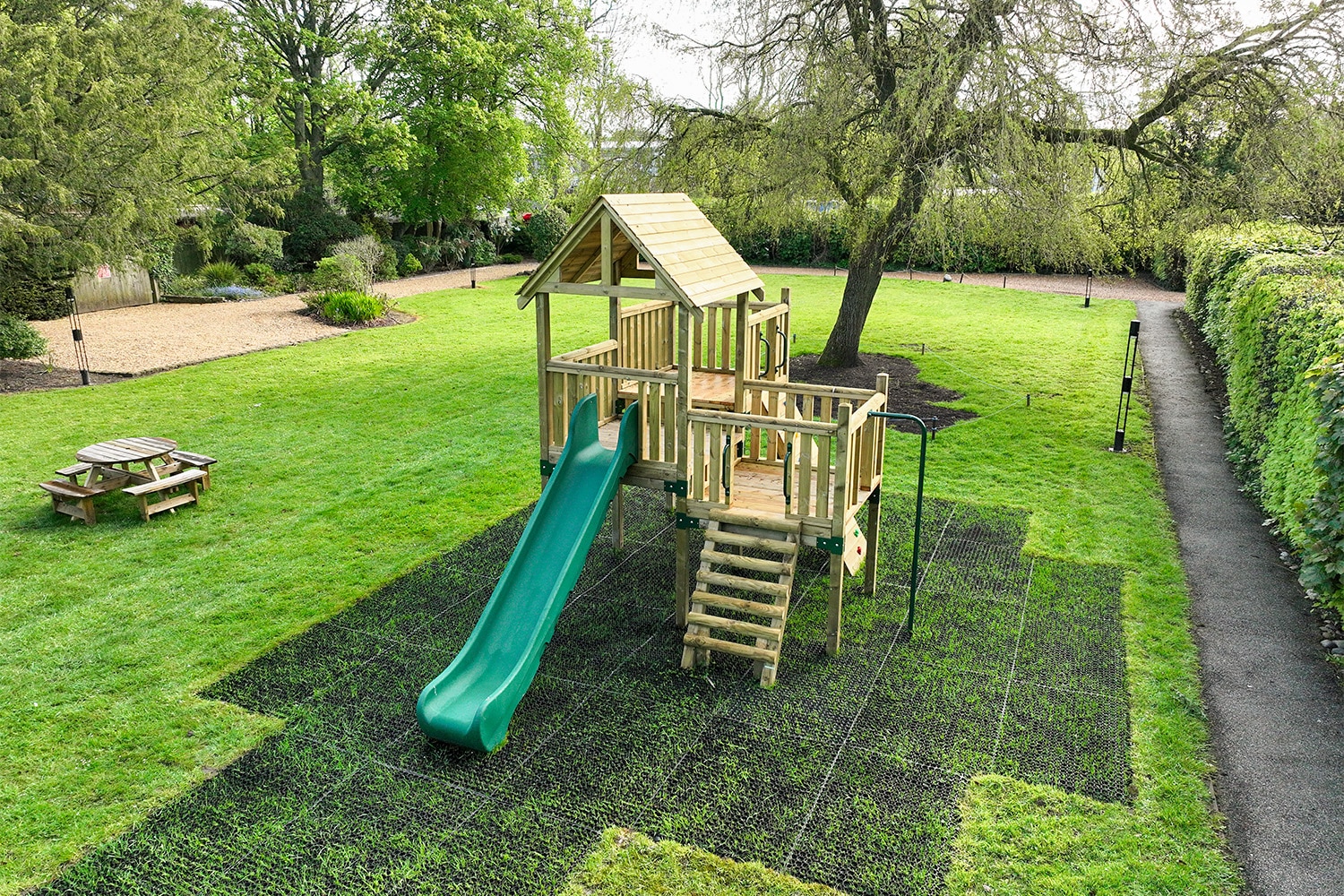 The Critical Fall Height is calculated by the maximum intended height for play from which a child could fall and the ground level. The thickness and area of safer surfacing will depend on the Critical Fall Height.
